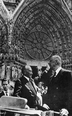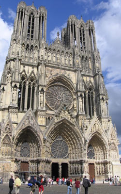 - Après ces amuse gueules, le visiteur arrive à la Cathédrale de Reims. Une heure de visite ne sera pas suffisante pour admirer son statuaire exceptionnel, ses célèbres vitraux et sa voûte vertigineuse. Se défile sous les yeux du visiteur, une grande partie de l’histoire de France, du baptême de Clovis en 496 à la réconciliation franco allemande en 1962.